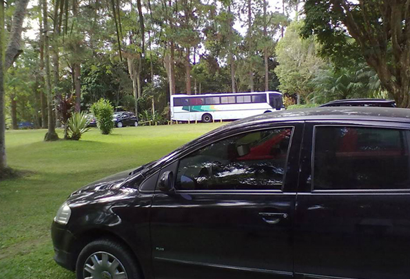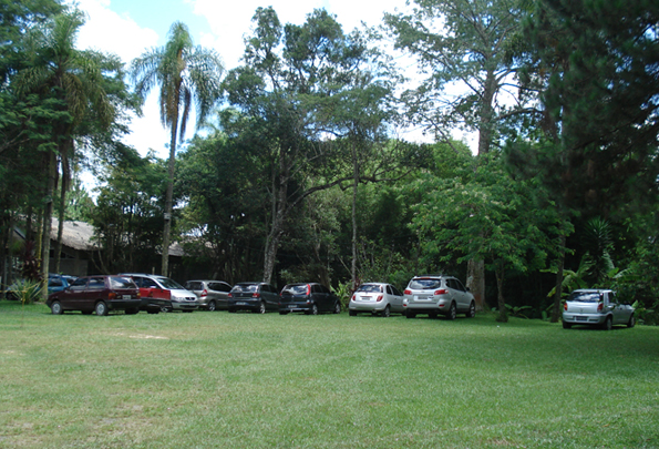 Ampla área para estacionamento tanto para carros como para ônibus.